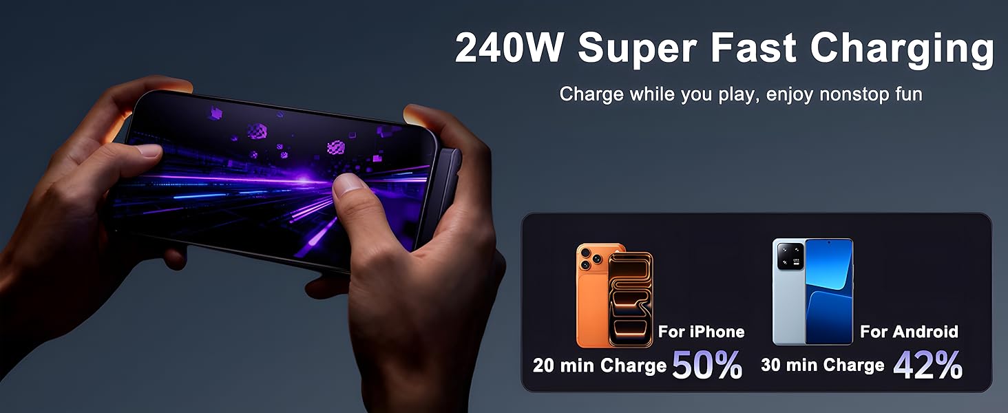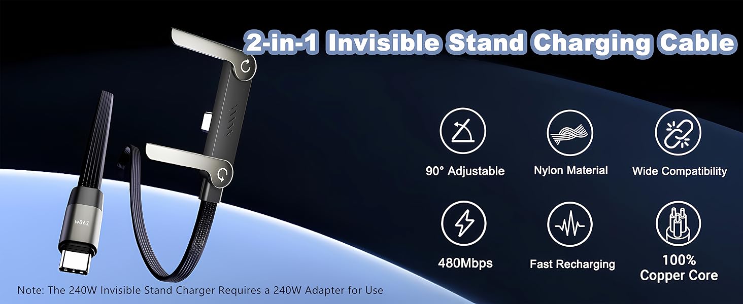 240W ULTRA-FAST CHARGING & INVISIBLE HOLDER: Experience ultra-fast 240W PD charging with this cable, compatible with high-power adapters for rapid charging during gaming or streaming. Its built-in invisible holder stand keeps your device secure and elevated while powering up.