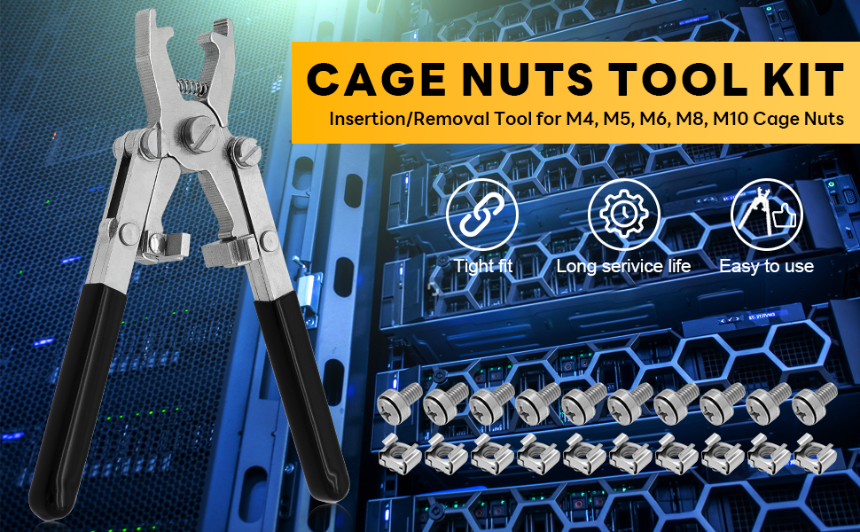 【 Universal Cage Nut Tool Fit for M4 to M10 Rack Nuts 】Our professional cage nut tool features a wide-grip design, effortlessly installing and removing all standard cage nut sizes: M4, M5, M6, M8, and M10. It's the only rack screw tool you need for any server rack accessories or cabinet project.