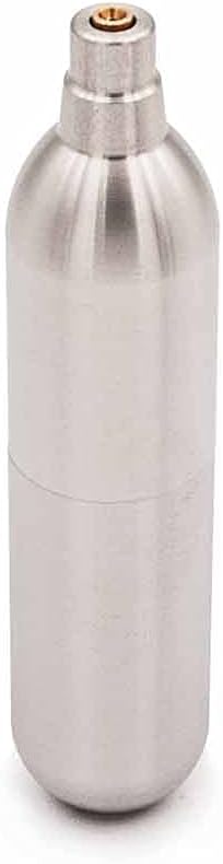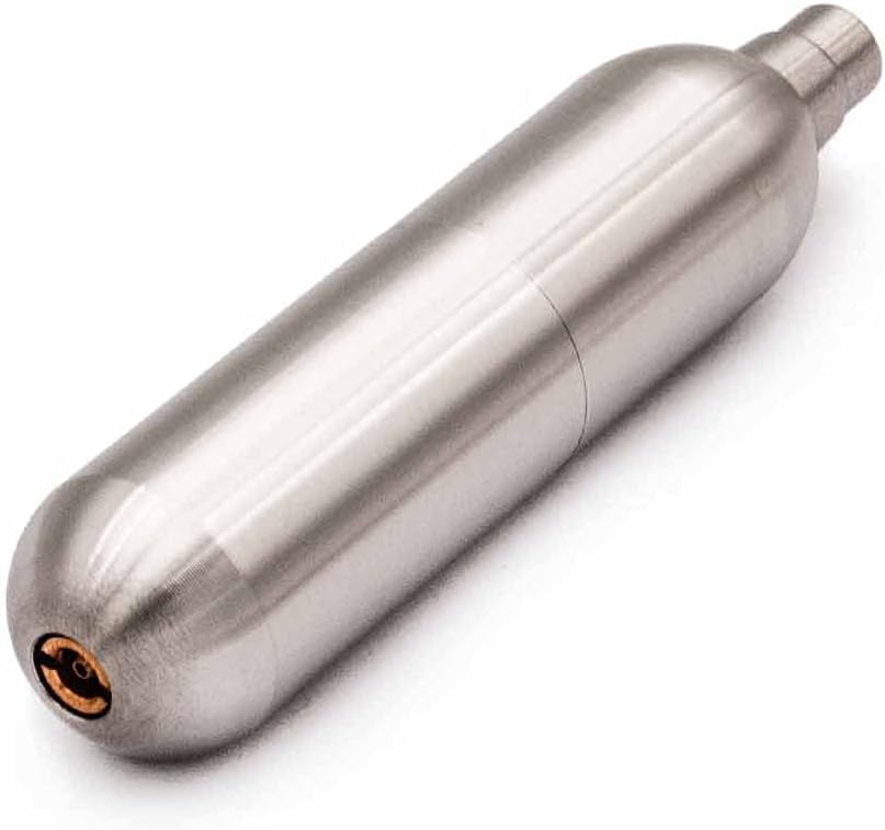 Reusable cartridge can be refilled with either green gas or CO2.