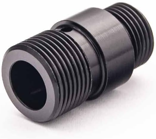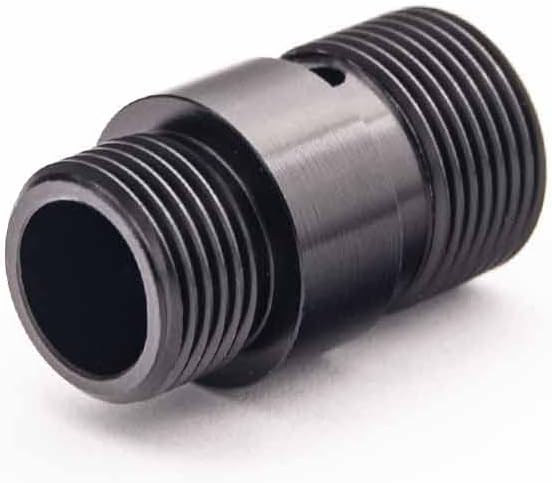 AOLS Aluminum Suppressor Adapter. Specification: 12mm CCW to 14mm CCW threading. Material: Aluminium, black anodized. Suitable for ARMY G series GBB. Weight: 5g. Manufacturer: Airsoft Industry Co. (AOLS).