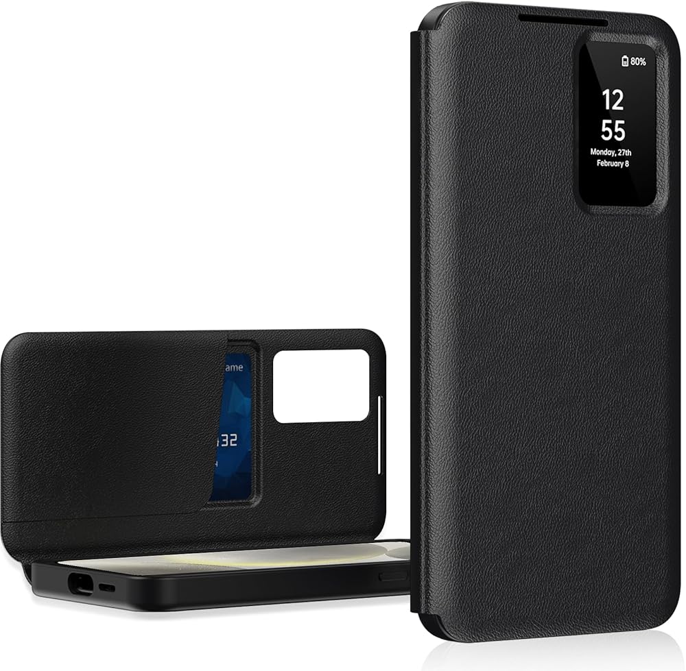 for Samsung S25 Ultra Case with Smart Small Screen View, S-View Wallet Phone Case, for Samsung Galaxy S25 Ultra 5G Case Smart Window Cover, Flip Leather Protective Smart View Black