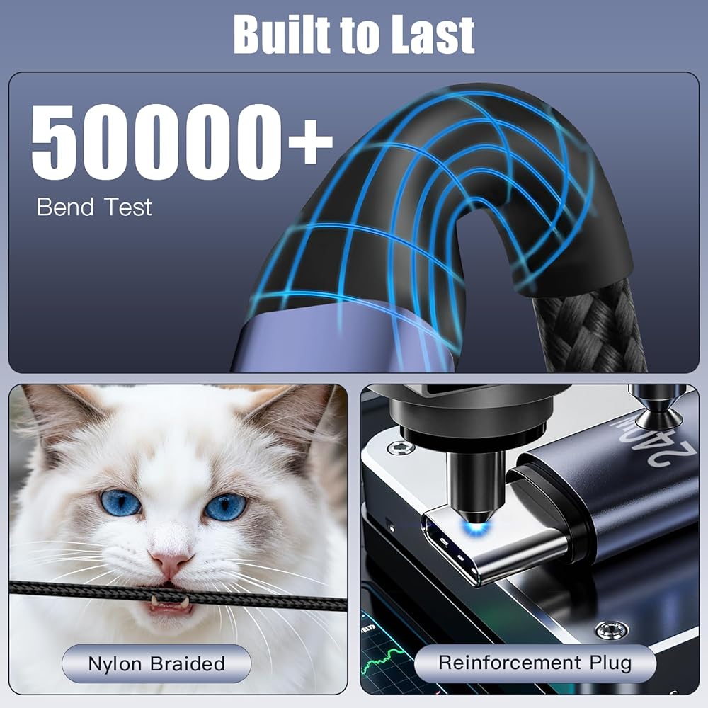 Durable Nylon Braided & Rustproof: Engineered for extreme durability. Features rust-resistant aluminum alloy connectors and reinforced stress points. Rigorously tested to withstand over 50,000 bends — far outlasting ordinary charging cables.