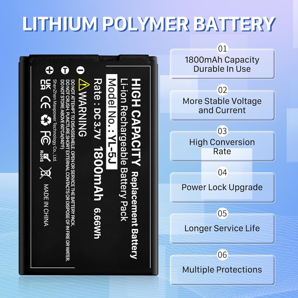 【High Quality Assurance】:Our upgrade YL-5J Replacement Battery has UL,CE and Rohs certification, uses Grade A+ rated battery cells. Every battery is manufactured and tested under strict quality control standards. Build-in microchip to prevent over-charging, over-discharging, short-circuit and over-heating. Multiple-protection for safer operation for both user and devices.
