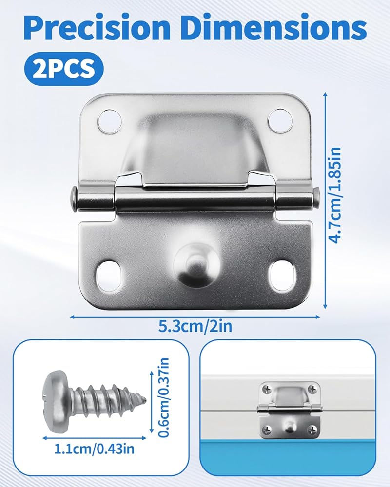 Simple Installation Process: The installation process is straightforward. Remove the old hinges, align these new ones with the existing holes, and secure them with the provided screws. This simple upgrade can be completed quickly with basic tools