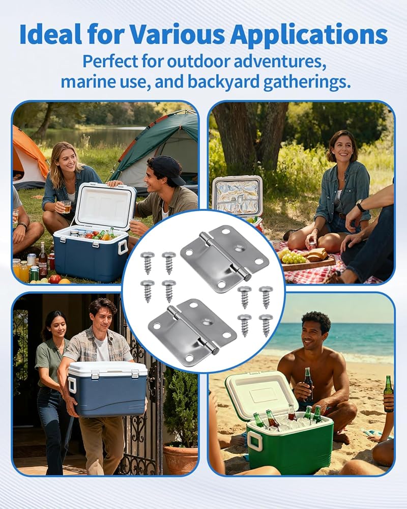 Versatile Cooler Accessory: In addition to serving as a replacement for Coleman cooler parts, this stainless steel hinge set can serve as a general camping cooler accessories upgrade for ice chests, helping to improve lid stability and longevity