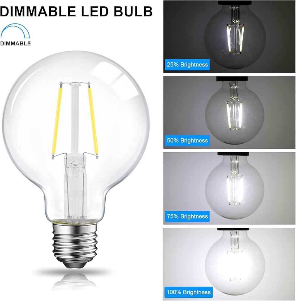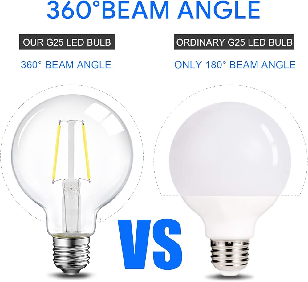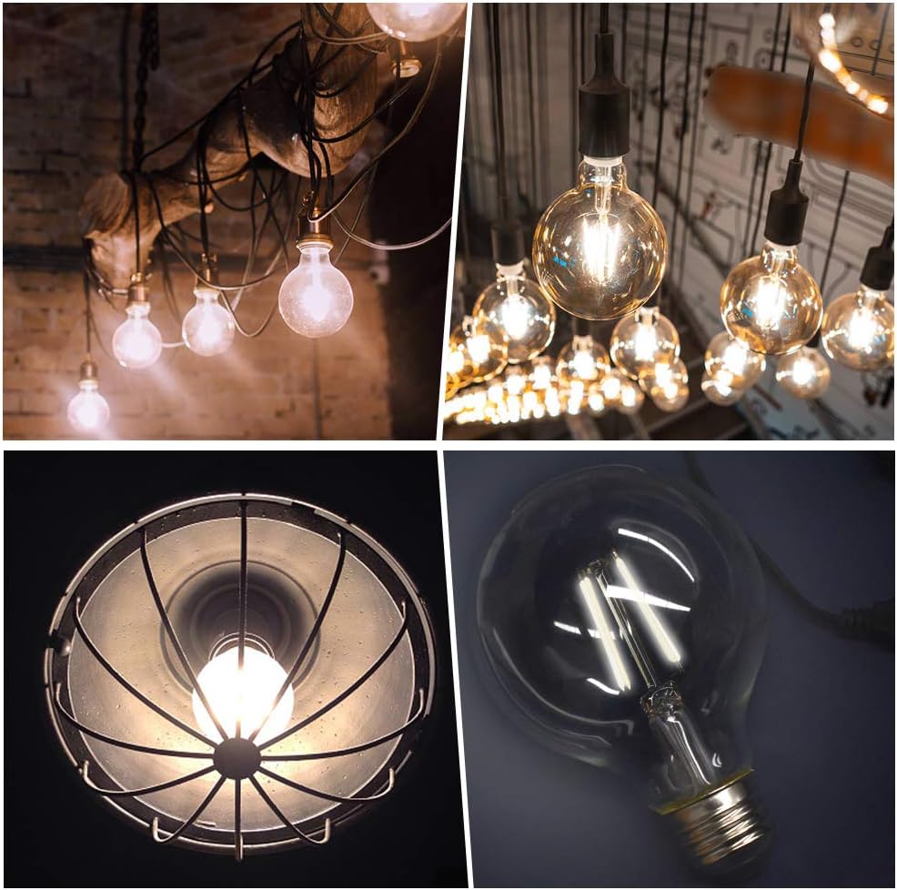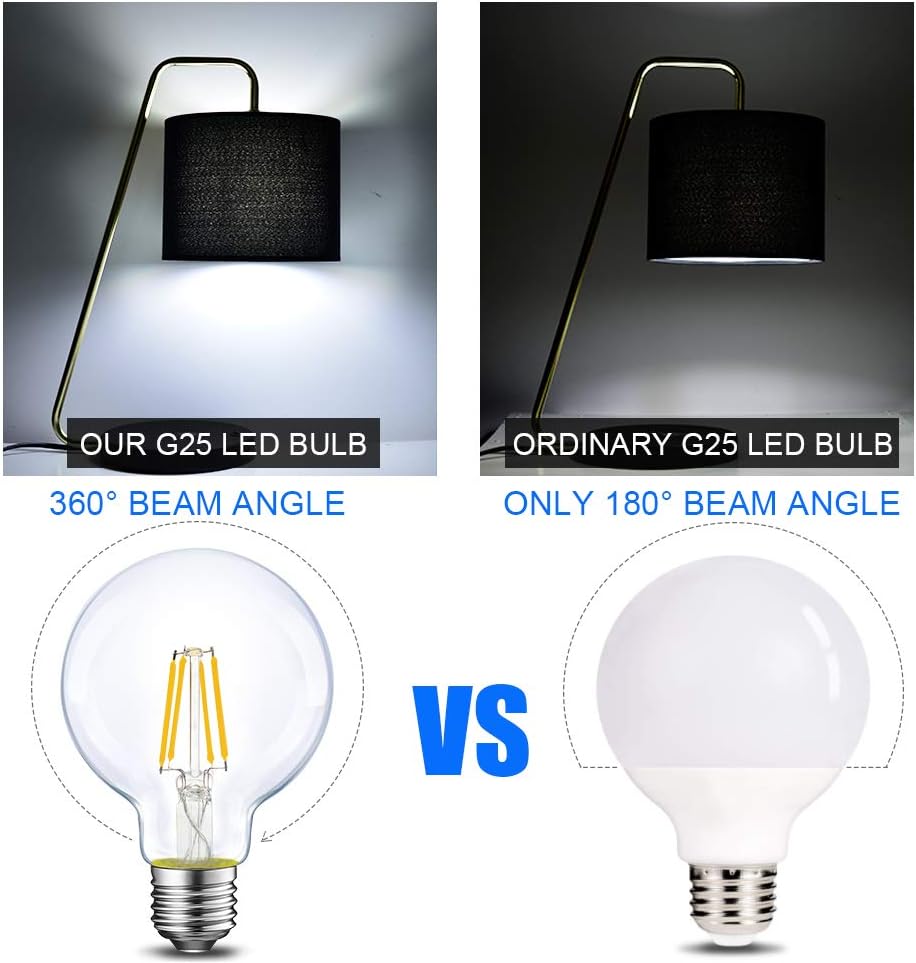 💡[Retro Style] Featuring ultra-thin clear glass and long filaments, our G25 LED Bulb makes a big statement of decoration. Globe cage filament design makes bulb look Classic and Unique
