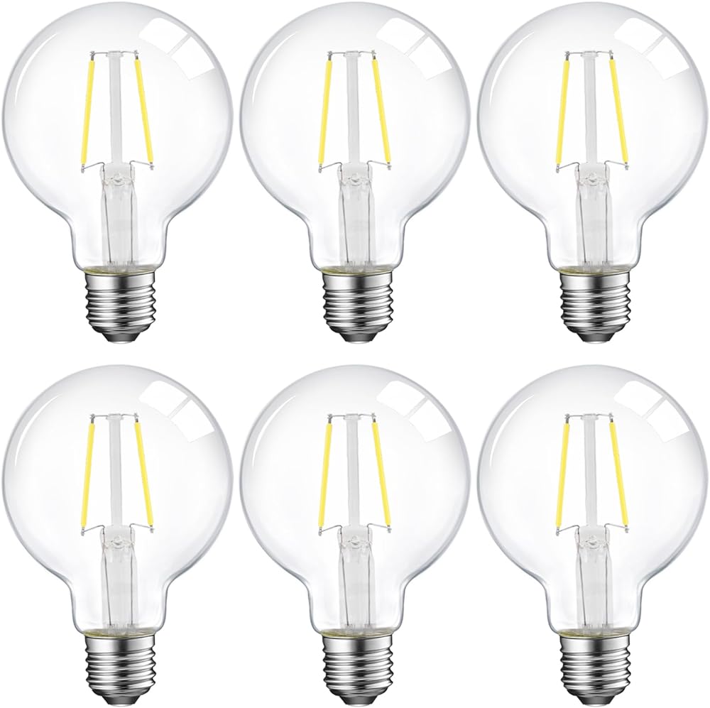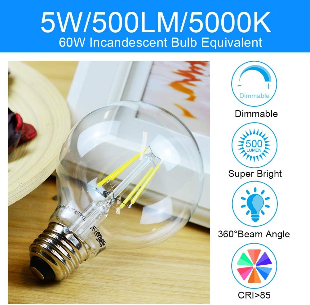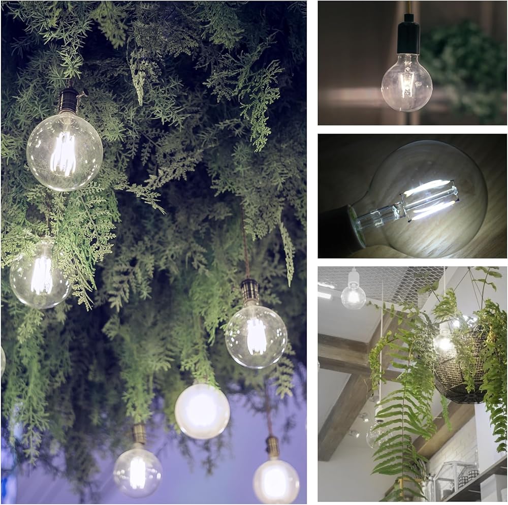 💡[Retro Style] Featuring ultra-thin clear glass and long filaments, our G25 LED Bulb makes a big statement of decoration. Globe cage filament design makes bulb look Classic and Unique