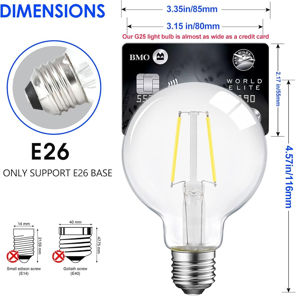 💡[Wide Application] With LED Globe Shape and E26 Base, you can easily screw into fixtures for various Scene and Atmosphere. Like hall drop light, decoration light, mirror light, table lamp, wall lamp in living rooms, bedrooms, bathroom etc