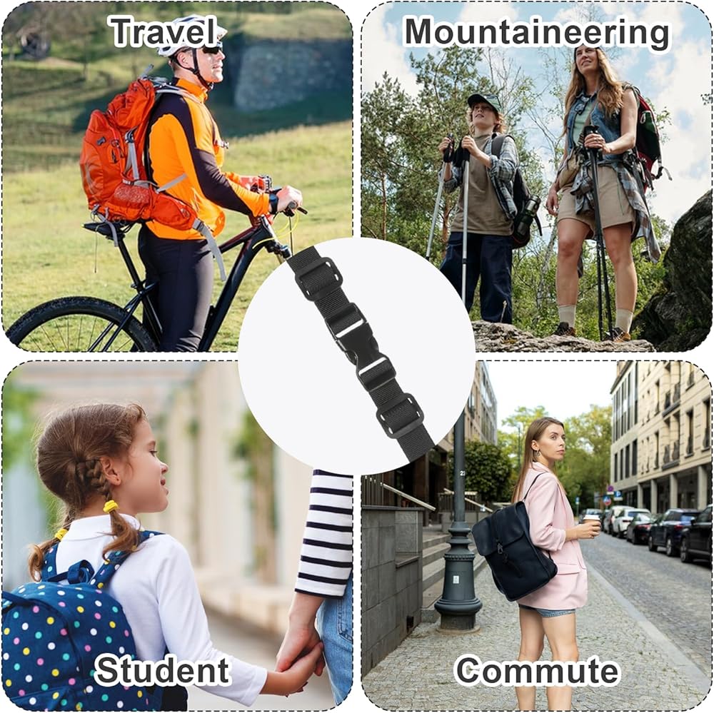 • 【Multi Purpose Backpack Chest Buckle Strap】Our multifunctional backpack chest strap is suitable for various bags, including children's backpacks, adult outdoor sports bags, and travel backpacks.Backpack secures straps can prevent slipping, free hands, and secure loads, making it perfect for hiking, fishing, rock climbing, camping, cycling, and other outdoor activities.