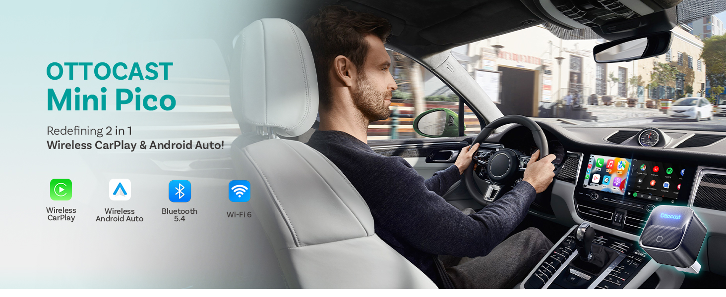 【Auto-switching? Just kick back】Unplugging, turning WiFi off, reconnecting? No thanks. The Ottocast Mini Core with its smart switch button auto-detects your phone and connects in just 5–8 seconds. It remembers two smartphones — if one's not around, the other jumps in. That's what a truly smart Wireless CarPlay Adapter / Android Auto Adapter feels like.