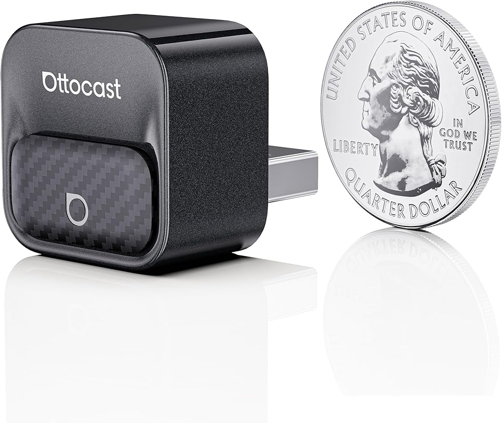 【Tiny size, big brains】About the size of a fingernail, it blends cleanly into your dashboard. The plastic shell avoids signal interference from metal, and the matte finish gives better grip for easy plug and unplug. Once in, the Ottocast ultra Mini stays put — even on bumpy roads. Small build, big upgrade for your Android Auto dongle setup.