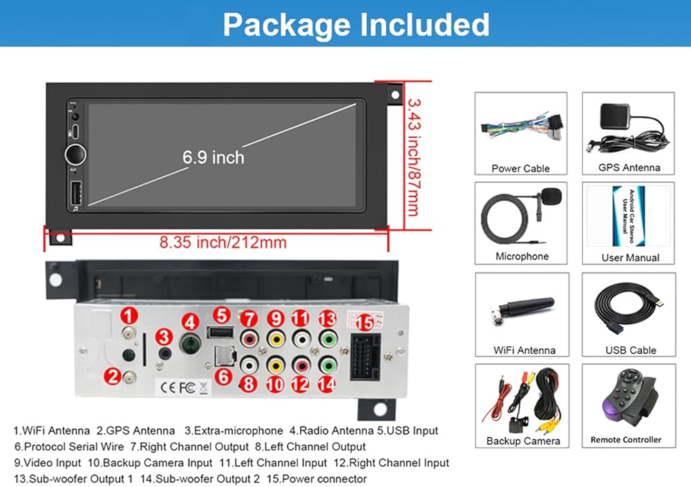 【2GB+64GB Android15 System,SWC Remote】 This unit is equipped with the latest Android 15 system, 4G RAM, 64GB ROM, runs smoothly, and can connect wifi download and store more APPs and files . Comes with Steering wheel control Remote .