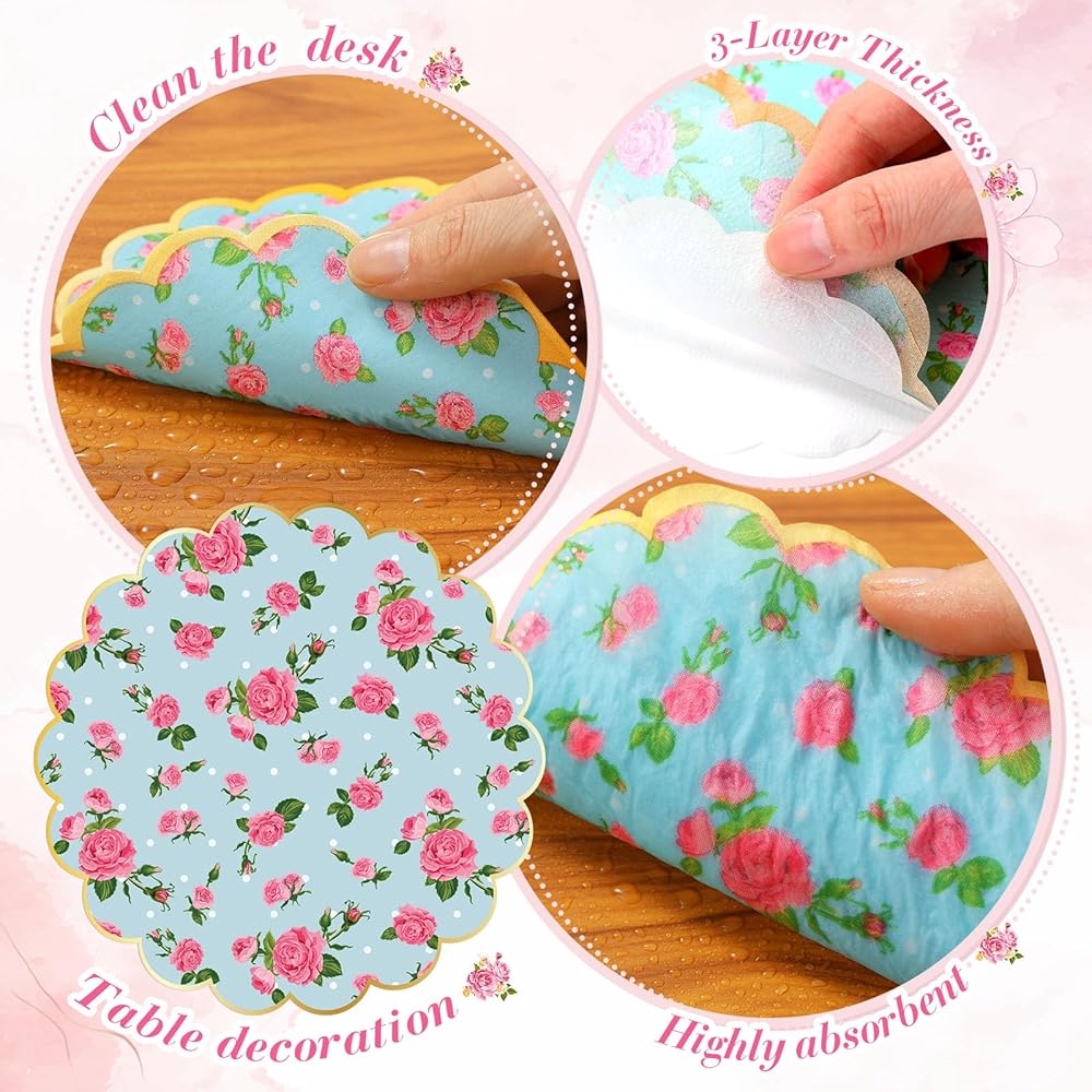 Quality Material: these floral tea party napkins are made of quality paper; Each napkin has 3 layers, which is soft, comfortable, and have good water absorption, are not easy to tear or fade when applied, and are convenient to use, giving you a good using experience