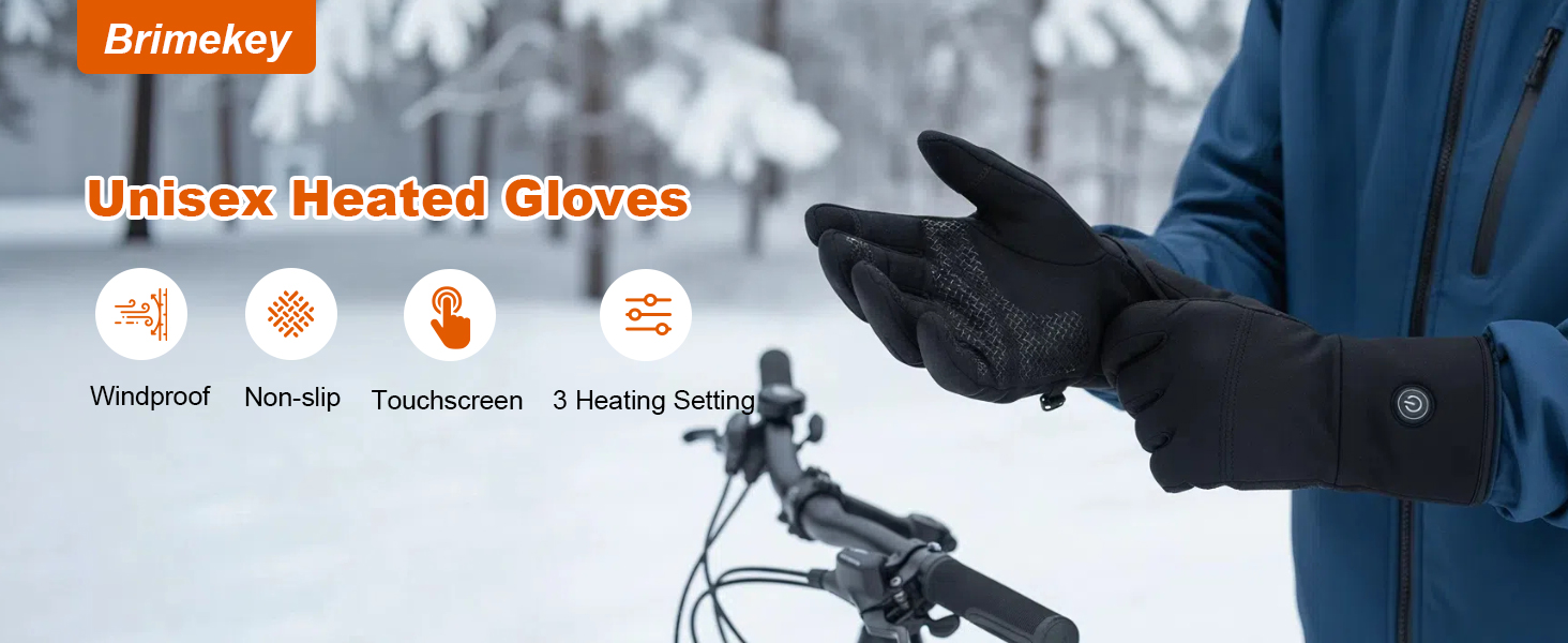 【Touchscreen Ready & Non-Slip Grip】Brimekey portable heated gloves use conductive PU on thumb/index fingers works flawlessly with phones and tablets. Silicone-patterned palms provide secure traction on tools, ski poles, or steering wheels – no glove removal needed.