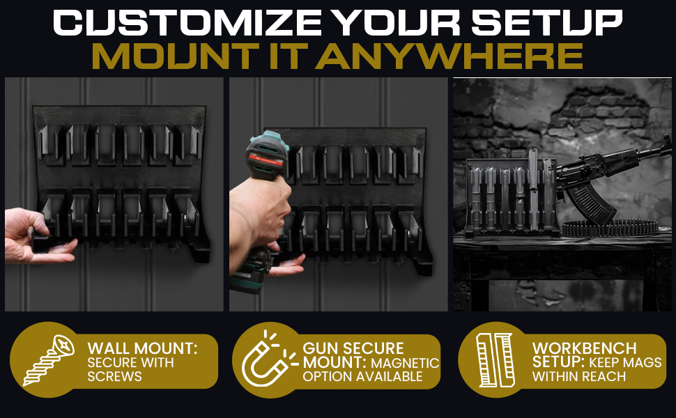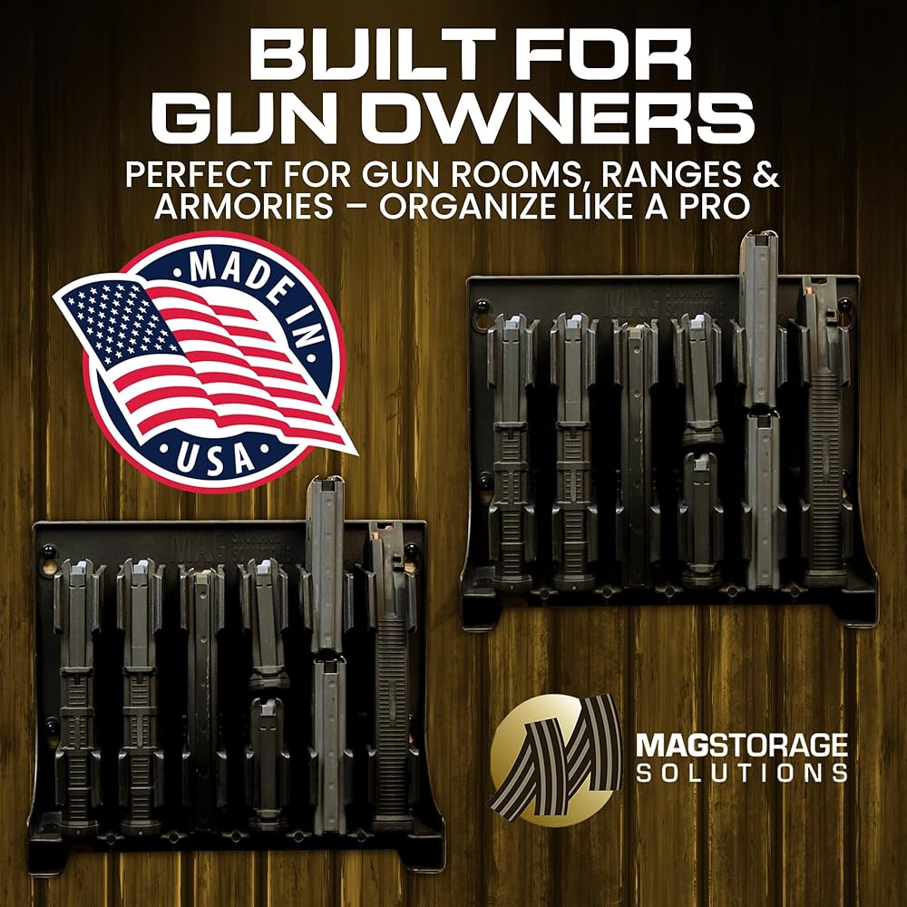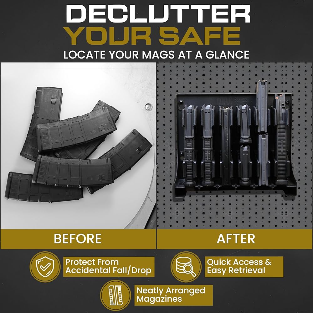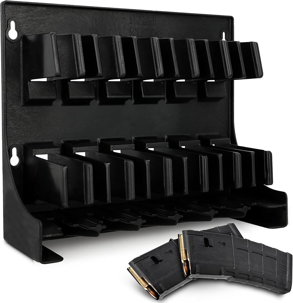 - [Mag Storage Solutions] AR-15 Magazine Holder Mag Holder Rack - Compatible w/ most .223 and 5.56 caliber mags - Holds Six 30-round AR-15 magazines - Mount inside your gun safe/weapon room