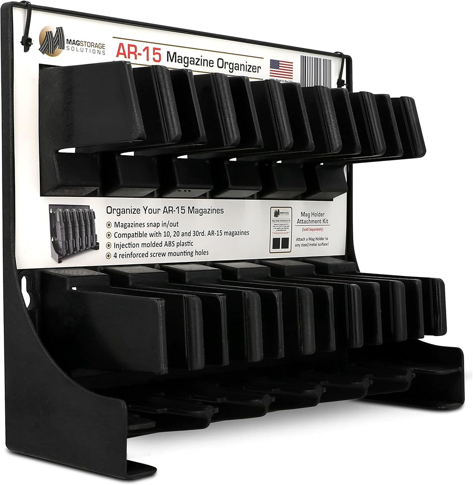 - Easily store and organize your AR-15 magazines (holds six 30-round AR-15 magazines)