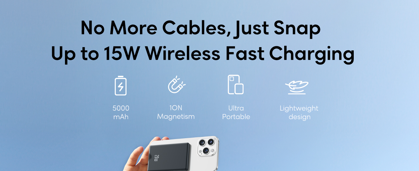 ✨ Ultra Slim Wallet Size Power bank - The lightest and thinnest magnetic power bank for iPhone on the market, less than 1cm thick and weighing only 119g, more than twice as light as a regular 10,000mAh wireless power bank. It can be easily stored in any pocket, and the 5000mAh capacity is enough for daily use! More special designed, you can just snap on and power would auto on, easily charging.Very suitable for any plane check-in, and outdoor adventures like camping, hiking.,etc