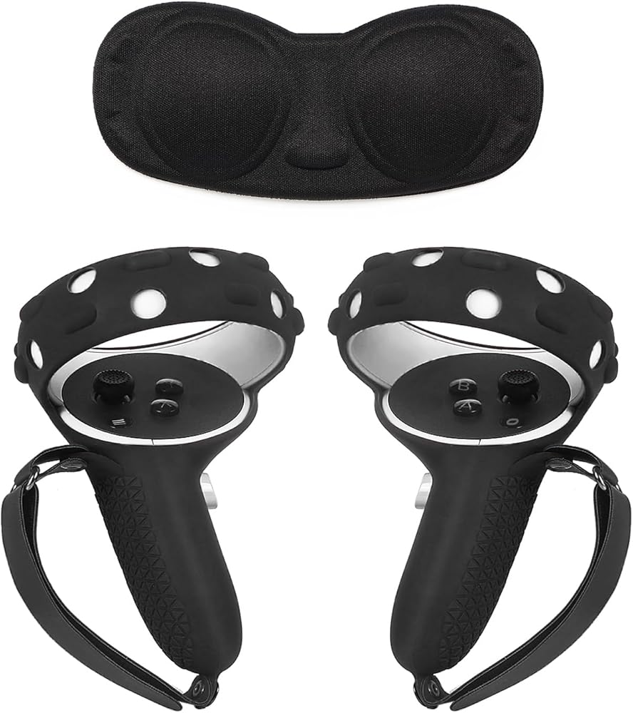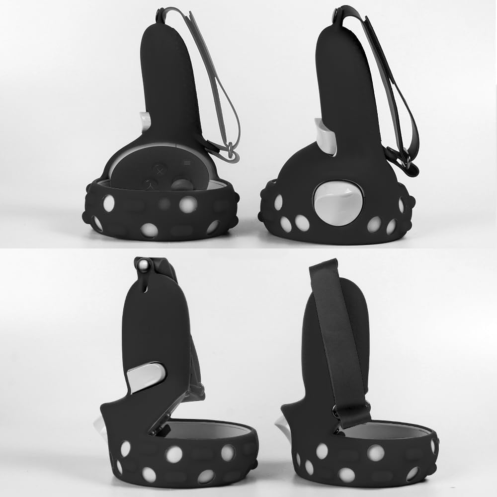 VR Controller Grips Cover with Anti-Throw Knuckle Strap + Lens Protector Cover for Oculus Quest 2 (Black)