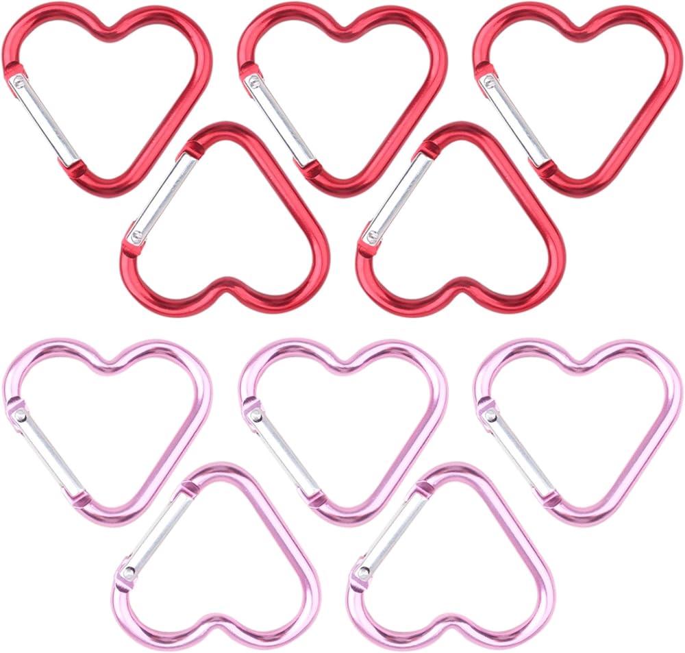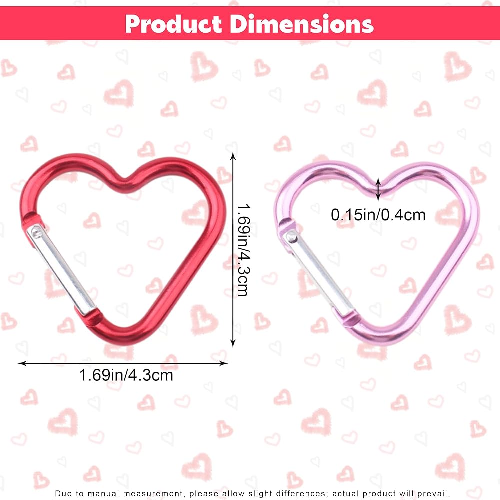 Add a touch of sweetness to your outdoor adventures and daily life with our delightful heart carabiner set! This package includes 10 charming heart-shaped carabiner clips in soft pink and romantic red, with 5 pieces of each color to mix and match according to your style. Measuring 4.4x4cm with a slim 4mm profile and weighing only 5g each, these lightweight yet durable clips are the perfect companion for all your needs.