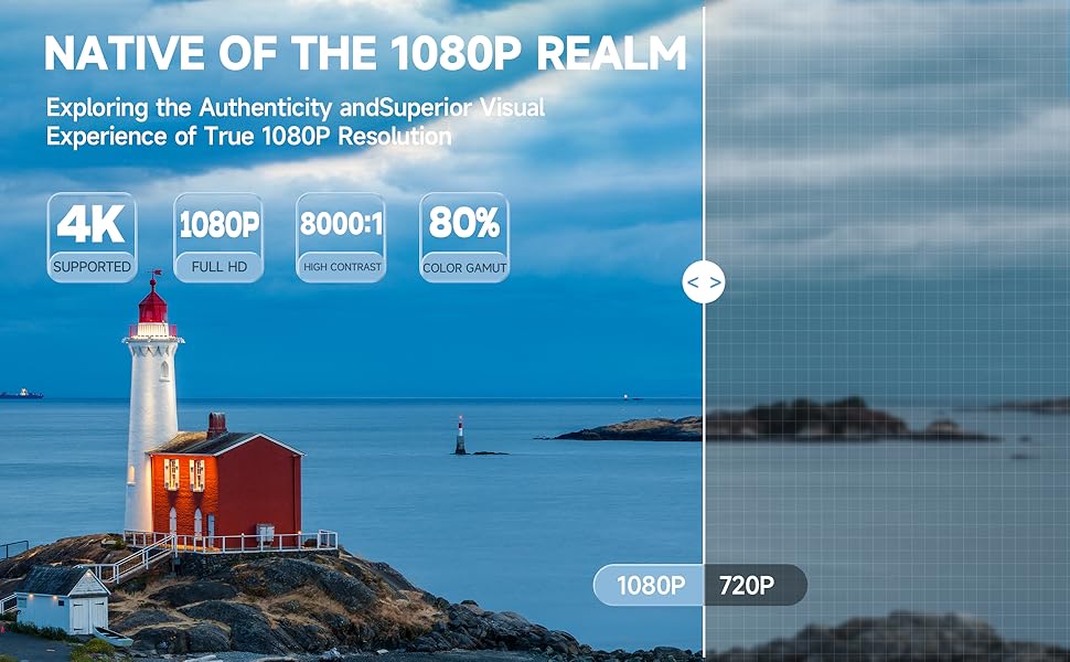 Breathtaking Visuals for Every Moment Dive into stunning 1080P Full HD with 4K input compatibility, delivering razor-sharp details and vibrant colors. With 500 ANSI lumens of true brightness, it shines in softly lit rooms, perfect for evening screenings or immersive RPG sessions. HDR10 amps up contrast, making every scene—from action flicks to nature docs—pop with lifelike depth.