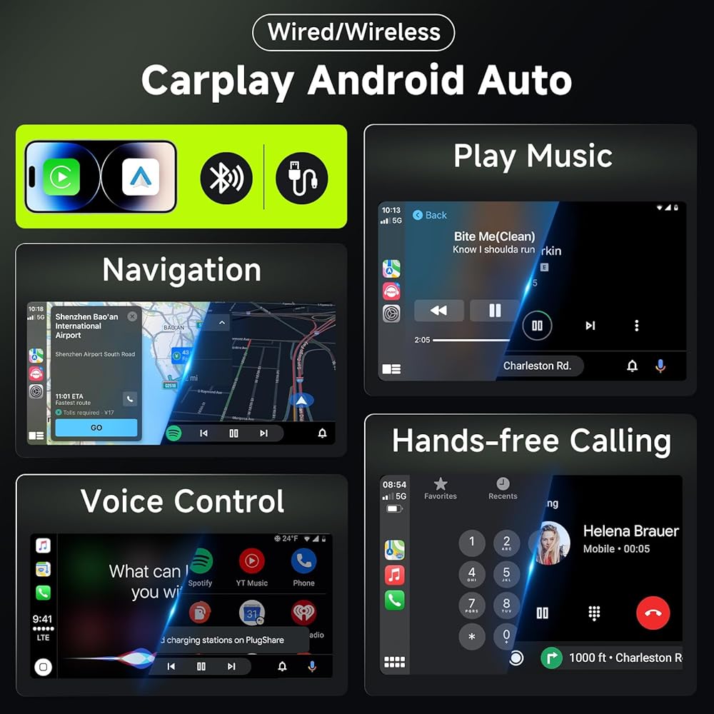 【Wiress Carplay & Android Auto & Mirror link】: 5.0 Bluetooth radio support Wired and wireless carplay android auto.after connection you could access mobile phone address book, mail, notification, map navigation, music, video and other information,Via Mirror Link,you can enjoy Movies on the touchscreen