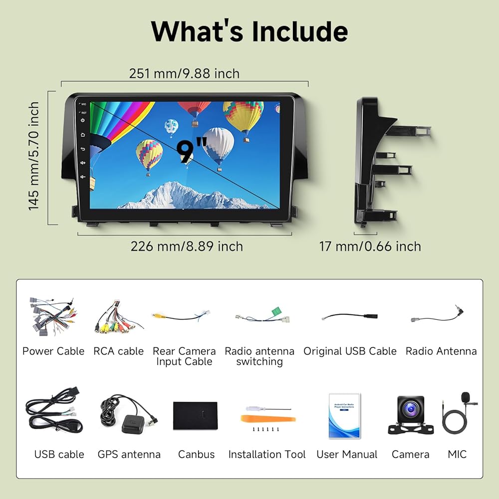 【For Honda Civic Car Radio Support J-B-L/B.O.S.E】 The Android Car stereo fits for Honda Civic 2016 2017 2018 2019 2020 radio,package contains frame accessories and installation tools,plug and play.Please refer to the CD back image in the picture,Our Car Stereo Support J-B-L and B.O.S.E stereo.If you have any question,please tell us via Amazon