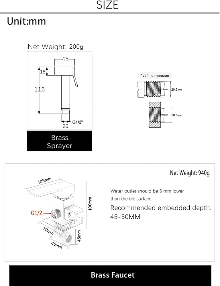 • ❤ Premium Quality: This toilet bidet sprayer is made of high-quality solid brass with a strong structure, durability and efficiency. No clogging in metal spray nozzle design. (Not tattered ABS plastic or rusty stainless steel)