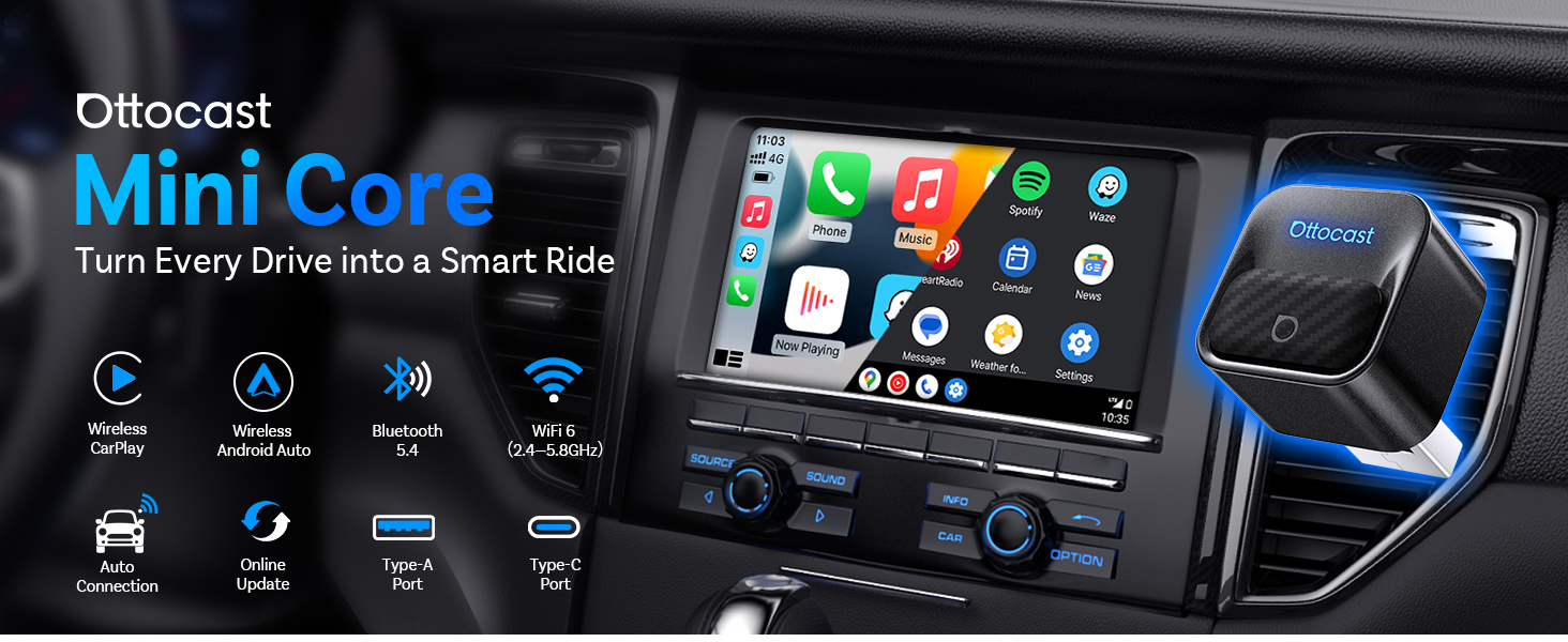 【Future-Proof with OTA & 2-Year Coverage】Will it stay up to date? Absolutely. OTA updates keep your Ottocast Mini Core current with new system versions. You also get 2 years of product coverage for extra peace of mind. Does it get a bit warm? Yep — totally normal and fully tested. Performance and connection stay solid every mile.