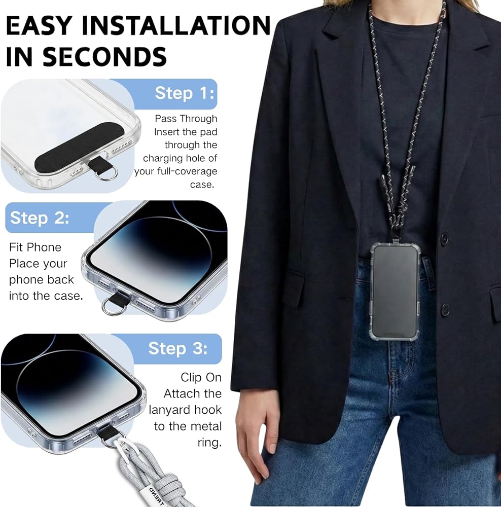 Universal Fit & Charging Friendly: This universal phone lanyard features an ultra-thin tear-resistant pad that fits full-coverage cases and supports corded or wireless charging without blocking the port