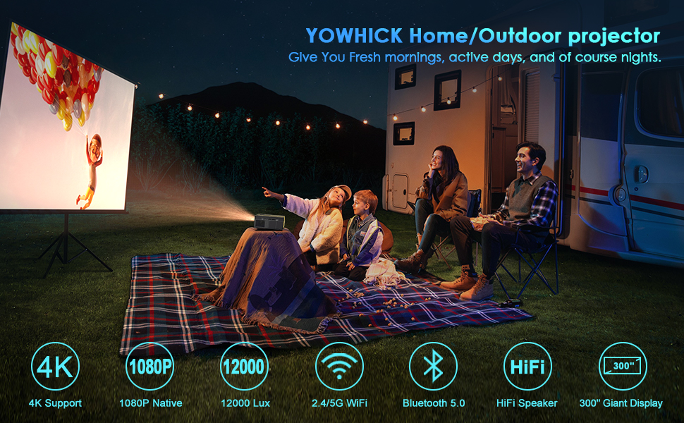 【Native 1080P & 3LCD Color】Valentines Gift Ideas! YOWHICK projector with WiFi and Bluetooth has real native 1920*1080 resolution (4K support), 6-layer high refractive index coated lens restores the true color of the picture, presenting high-definition picture quality to reduce eye irritation. Whether home theater or outdoor movies, which can provide you with a more comfortable and ultimate visual experience.