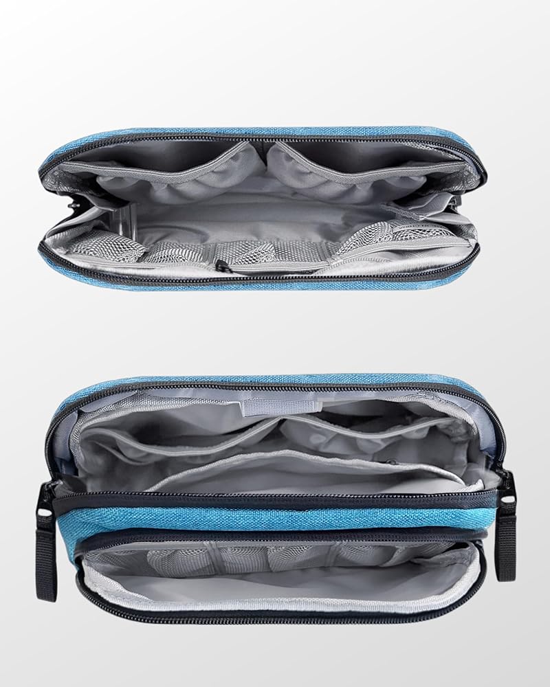 Portable Electronics Organizer Travel Case, Double Layers Tech Organizer, All-in-One Charger Storage Bag for Charging Cable, USB Cord, Charger, Power Bank, Flash Drive, Blue