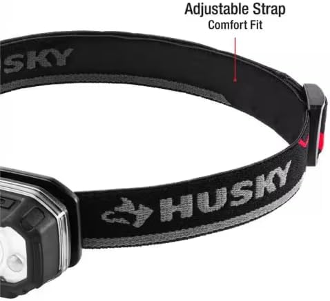 The HUSKY 850 Lumen Dual-Power Headlamp offers exceptional brightness and versatility for personal task lighting and large jobsite illumination. This full-featured design incorporates high-power LED and COB technology, providing brilliant illumination across 8 light modes with adaptable beam patterns-from a 30º Spot to a 120º Flood-and a 160º Wide-Angle for excellent peripheral illumination. It also includes a red mode to preserve night vision and a red flashing mode suitable for alerts or distress signals. The Dual-Power system allows for hybrid flexibility with either the included rechargeable lithium-polymer battery or 3 AAA disposable alkaline batteries (not included). The headlamp is USB Type-C rechargeable, equipped with a lithium-ion battery and charging cable. It features a 900-lumen Turbo mode, an impressive 36-hour ECO mode runtime, variable dimming and an integrated tilt feature for controlling light dispersion to prevent blinding others. Designed to meet job site demands, it has an IP54 water-resistance rating and meets ANSI/FL1 standards for reliability.