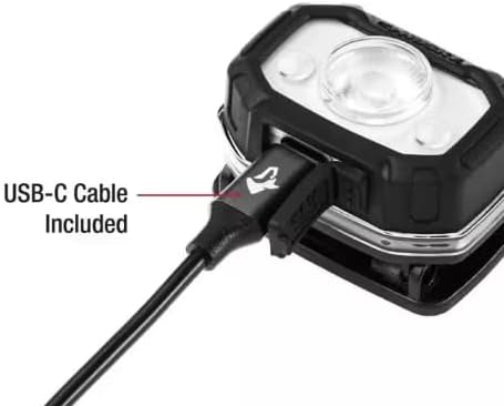Powerful lithium-polymer battery (1100mAh, 3.7V) recharges in ~2 hours, Adjustable tilt allows you to control the light direction, Convenient, hands-free lighting, Includes: 1 headlamp, 1 head strap, 1 rechargeable battery, 1 USB-C charging cable
