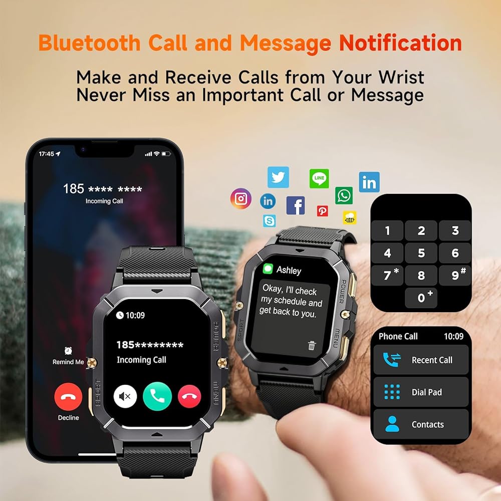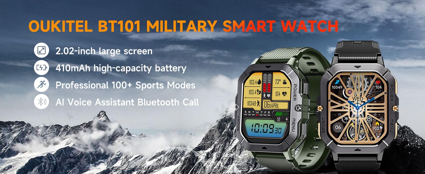 Durable Samrt Watch with Waterproof. The OUKITEL BT101 Rugged Smartwatch is waterproof and tested to be undamaged even in water up to 10 meters deep. The case is made of aerospace-grade metal and the screen is made of hard unbreakable Corning Gorilla Glass, which not only withstands drops and bumps better, but can also be used in extreme environments.