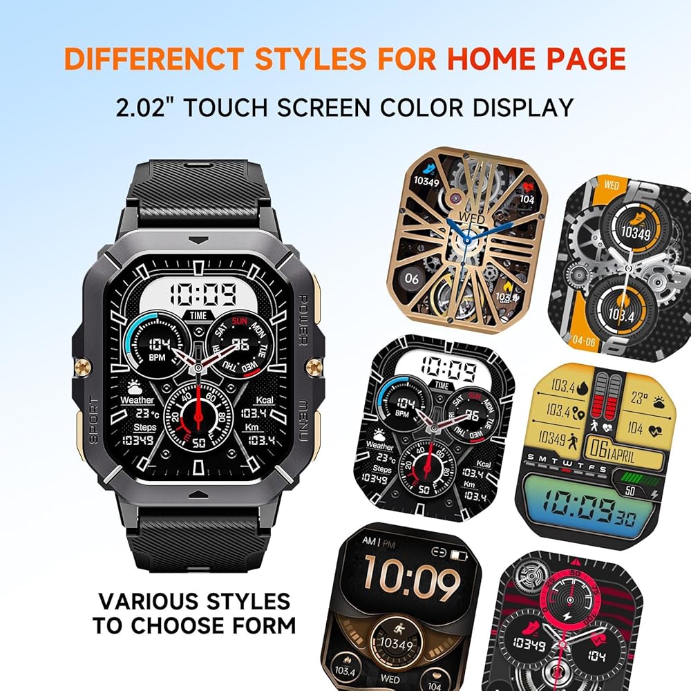 2.02-inch large HD touchscreen.With a large 2.02-inch screen, the BT101 smartwatch is the largest smartwatch on the market. The touchscreen is smooth and responsive, giving you the best visual and tactile experience. You can also manually adjust the screen brightness to make it as comfortable as possible to use.