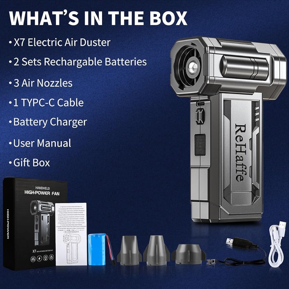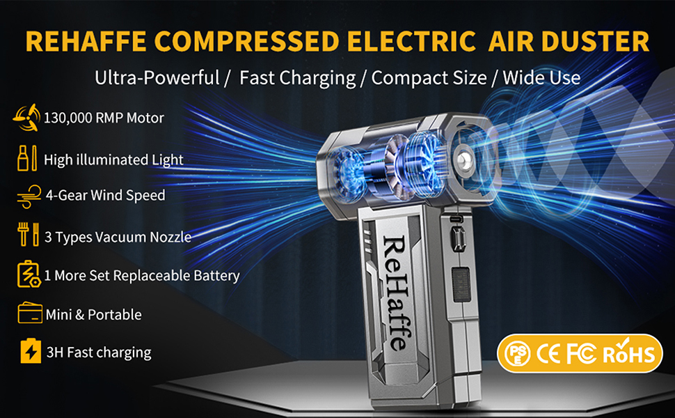 🌟【Warranty & Support】ReHaffe electric compressed air duster cleaner offer two-year warranty and 24/7 customer service. During this period, if you have any issues regarding product use, installation, or quality issue, please feel free to contact us, and we will provide you with the fastest after-sales support.