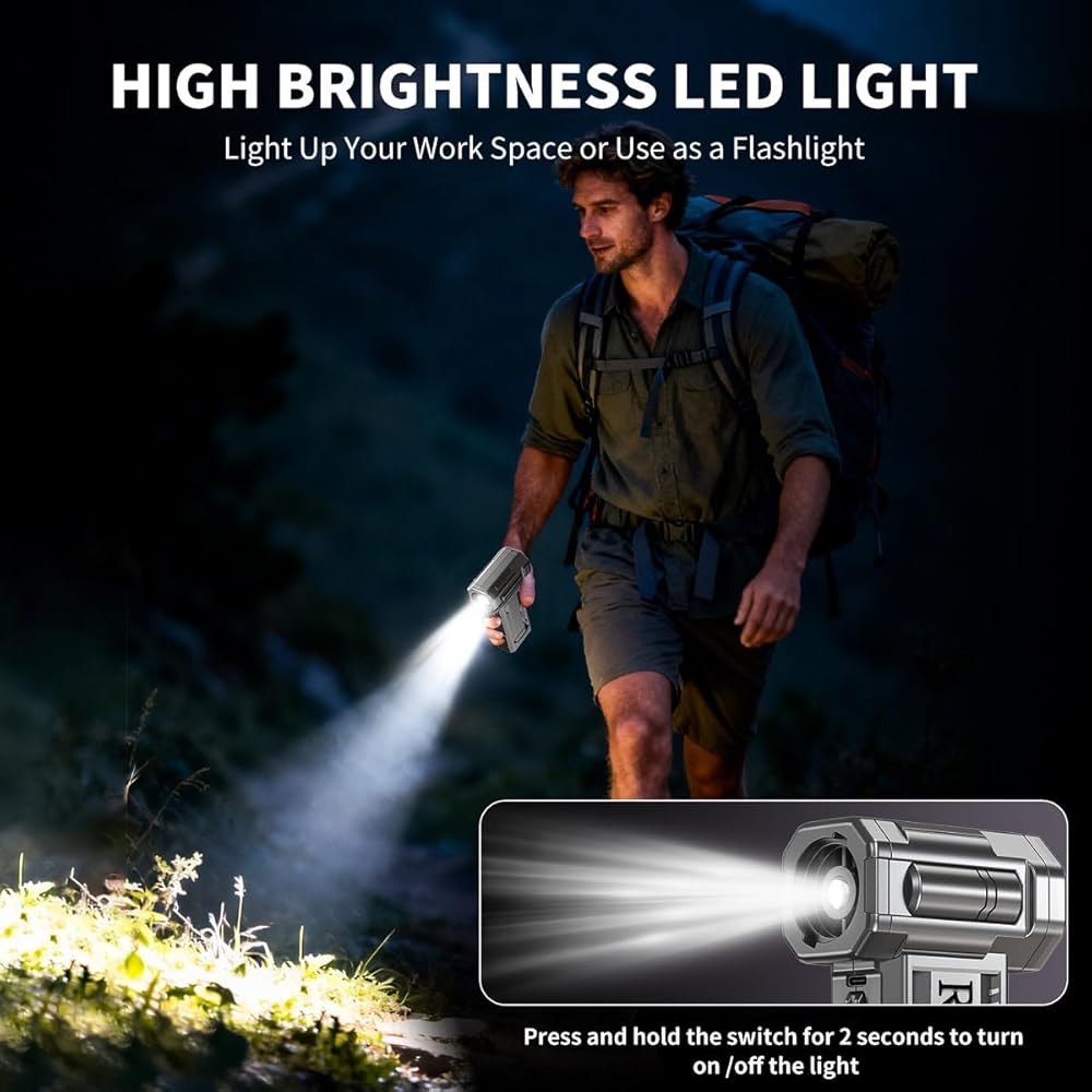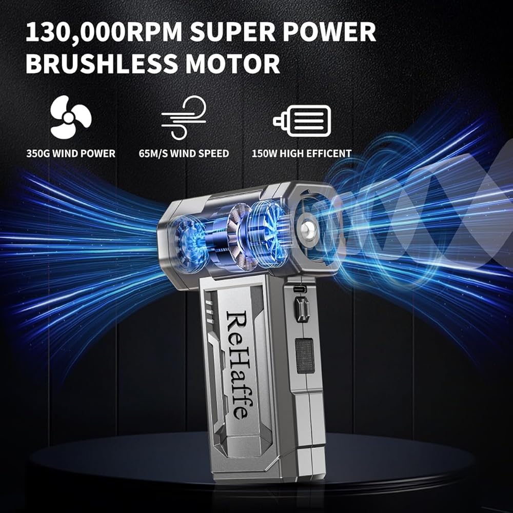 🌟【130000RPM Powerful Airflow】Equipped with a high-efficiency brushless motor, this electric air duster generates 55m/s wind speed to blast away stubborn dust/debris—far surpassing traditional canned air. 4-speed adjustable (40k/70k/100k/130k RPM) adapts to electronics cleaning, car detailing, outdoor leaf blowing, and even campfire boosting (multi-purpose air blower).