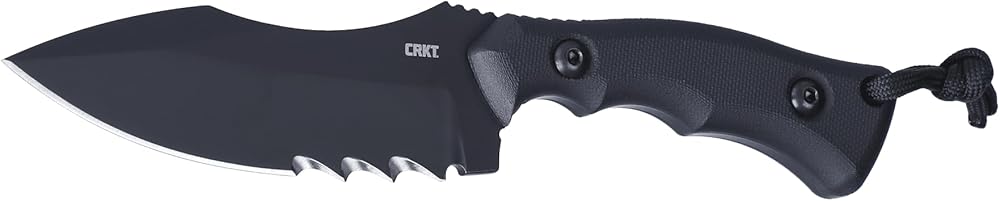 CRKT Bugsy Outdoor Survival Fixed Blade Knife with Sheath: 1095 Carbon Steel Veff Serrations Blade, G10 Handle, 3605KV