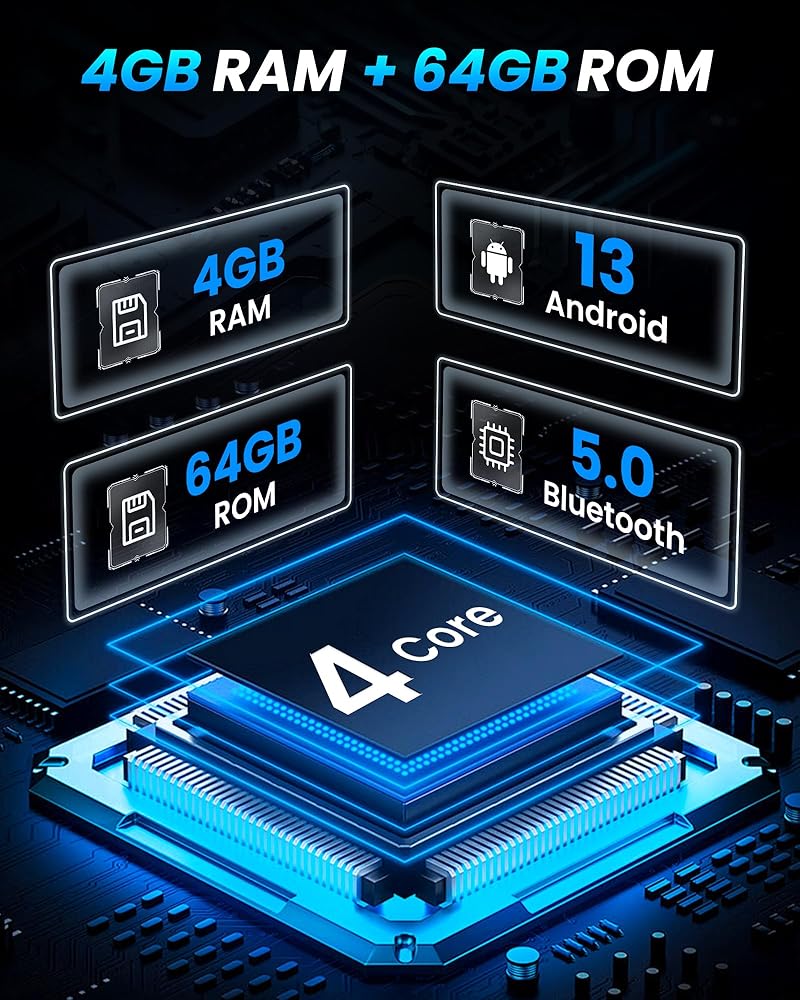 【Powerful Android 13 System with GPS】 Powered by Android 13 OS, the 4GB RAM allows seamless operation of multiple apps, while 64GB storage provides ample space for offline GPS maps, music, videos, and other media Built-in GPS with pre-installed Google Maps supports real-time 3D navigation and offline maps, ensuring accurate guidance anytime, anywhere.
