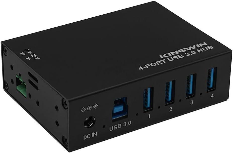 Kingwin USB 3.0 Hub – 4-Port Industrial Metal USB Hub, High-Speed 5Gbps Data, Mountable Design, Heavy-Duty Aluminum Housing, Reliable Expansion for PC, Laptop, Industrial Equipment & Workstations.