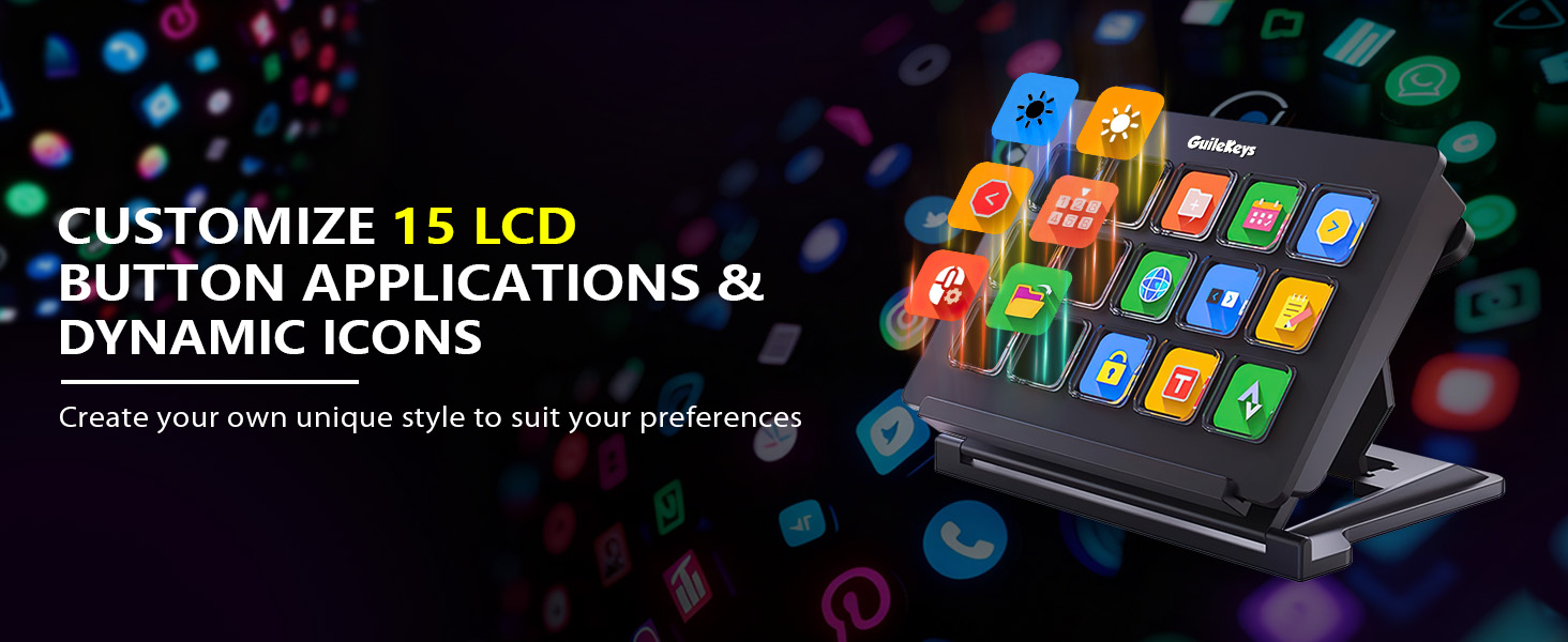 【Custom Animated Icons】 GuileKeys stream deck supports animated GIF icons and also allows screenshots to be used as icons, such as website logos or game skills. No need to memorize them, each of the 15 buttons has its own individual LCD screen, and the icons use GIF animations to create cool icons and enjoy a superior visual experience