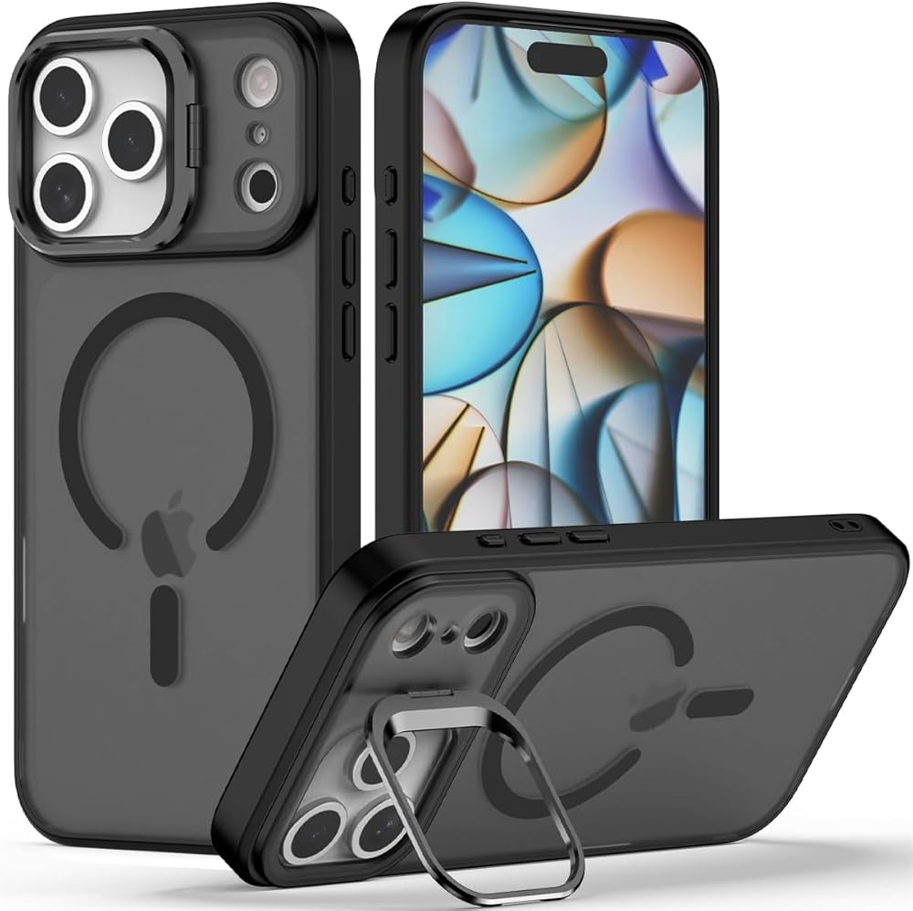 Nvollnoe for iPhone 17 Pro Case Compatible with MagSafe Military Grade Shockproof Heavy Duty Protective Adjustable Kickstand Matte Semi Clear Phone Case for iPhone 17 Pro(Black)