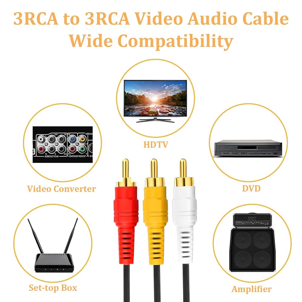 Ideal for Multiple Devices: Whether you're setting up a home theater, gaming station, or audio system, this 3 RCA cable is compatible with various audio/video devices equipped with RCA connectors, making it a versatile addition to your setup