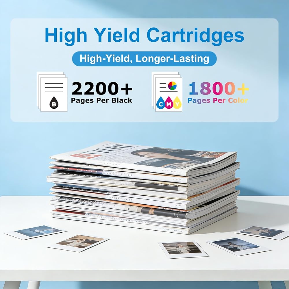 High Pages Yield: 952xl black ink cartridge can print up to 2,200 pages, 952xl color ink cartridges can print 1,800 pages to meet high frequency printing needs. (Based on 5% coverage rate).
