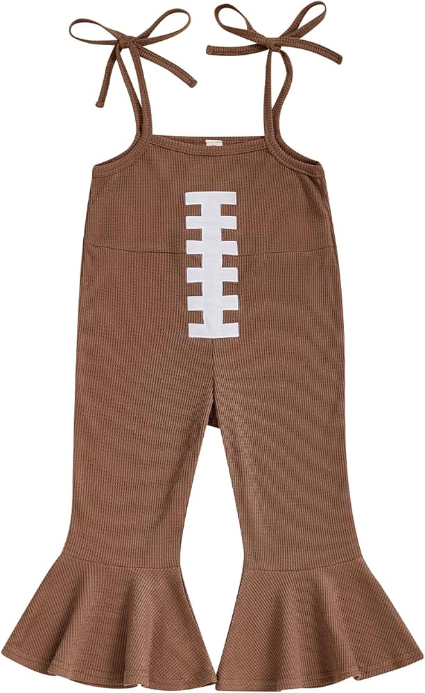 Toddler Baby Girl Football Outfit Jumpsuit Bow Football Romper Game Day Bell Bottom Overalls Kids Rugby Flared Pants
