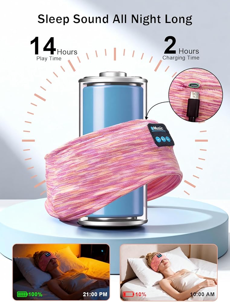 عمر البطارية طوال الليل وإعادة الشحن السريع: استمتع بأكثر من 14 ساعة من التشغيل المستمر بشحنة واحدة - مثالية للضوضاء البيضاء طوال الليل أو الموسيقى الهادئة أو الكتب الصوتية. تضمن وظيفة الشحن السريع أن تكون سماعات الرأس المخصصة للنوم جاهزة في أي وقت تحتاج إليها