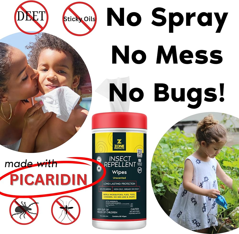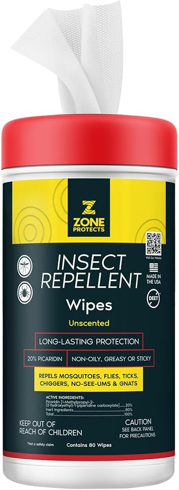 Introducing the Zone Protects Unscented Picaridin Insect Repellent Wipes — 80-count of long-lasting, mess-free protection designed for families, outdoor enthusiasts, and anyone who wants serious bug defense without the greasy side effects. Each wipe is loaded with 20% Picaridin, a DEET-free formula proven to repel mosquitoes, ticks, flies, gnats, chiggers, and no-see-ums for up to 12 hours. Perfectly safe for faces, necks, ears, and hands, these hypoallergenic wipes are the go-to solution for parents, athletes, and professionals looking for effective insect repellent that's gentle on skin and scent-free. Whether you're deep in the woods or just walking the dog, Zone Protects Picaridin Wipes deliver odorless, oil-free performance that won't stain clothing, damage gear, or irritate skin. Made proudly in Alabama and registered with the EPA, these portable, travel-friendly wipes give you the confidence of lab-tested protection in every single sheet. Ideal for camping, hiking, ball games, or family picnics, this 80-count bulk pack is your ultimate shield against biting insects — without the stink, slime, or sketchy chemicals. picaridin insect repellent wipes bug repellent for kids face safe mosquito wipes tick repellent for children unscented bug repellent wipes deet free insect wipes long lasting mosquito repellent oil free bug spray wipe insect repellent for face safe tick repellent for sensitive skin 12 hour mosquito protection best bug repellent for travel hypoallergenic mosquito repellent wipes picaridin wipes for camping scent free tick wipes for kids portable bug repellent travel insect repellent wipes sweat proof bug repellent hunting wipes for mosquitoes