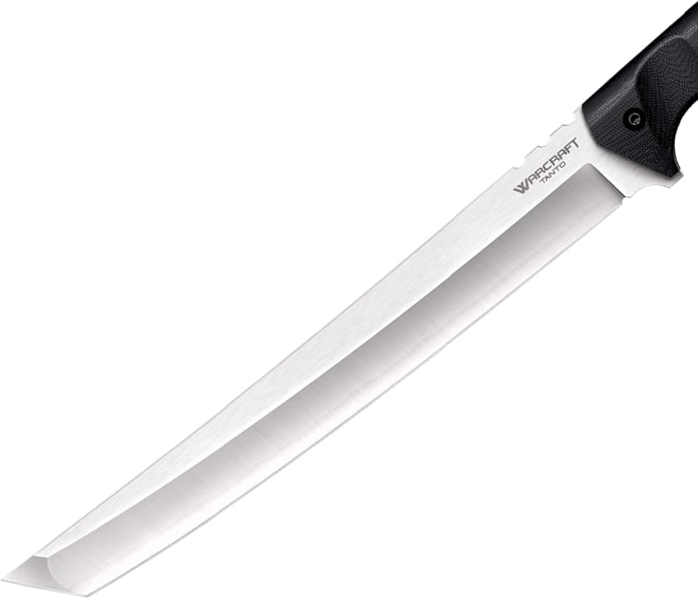 PREMIUM MATERIALS - The Warcraft Tanto blade is made from San Mai III steel, known for its incredible cutting power and edge retention; The full tang construction is encased with G-10 handle scales, providing a comfortable and secure grip