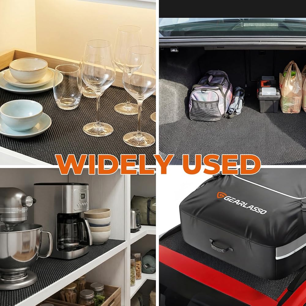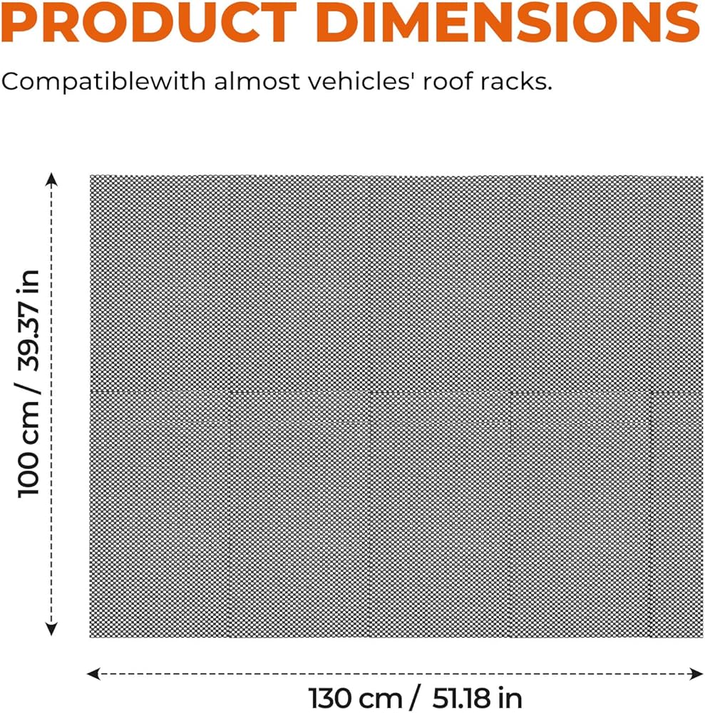 【Universal Fit & Multi-Purpose】51" x 39" large size fits most cars, SUVs and vans. Easy to trim for a custom fit. Works not only as a roof cargo bag mat, but also as a picnic mat, trunk liner, or anti-slip pad under boxes and gear