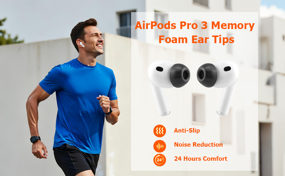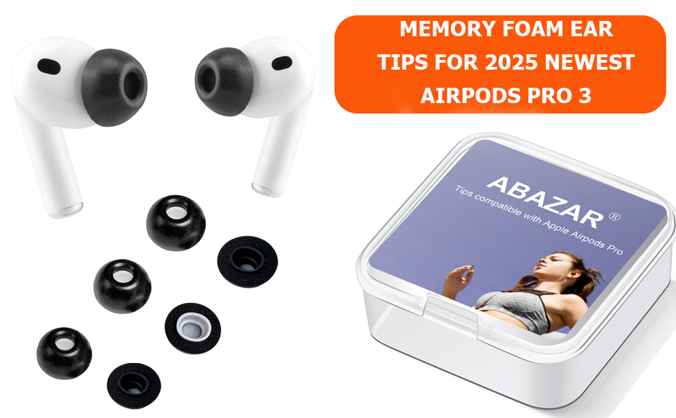 Memory Foam Tips for Newest AirPods Pro 3, No Silicone Eartips Pain, Anti-Slip Replacement Ear Tips, Fit in The Charging Case, Reducing Noise Ear Tips, 3 Pairs (S/M/L, Black)